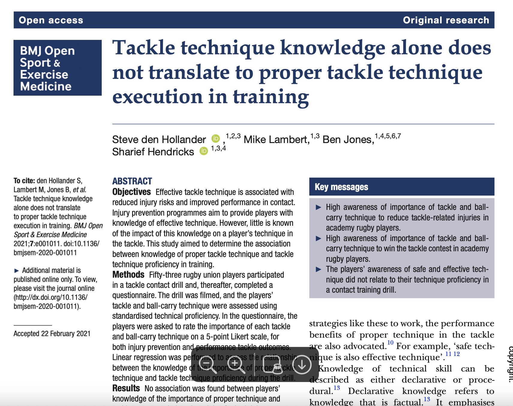 Sharief Hendricks On Twitter New Paper Does Declarative Knowledge Of Safe And Effective Tackle Techniques Translate Into The Execution Of Safe And Effective Tackle Techniques In Training Bmjopensem By Steve Dh1 Mikelambert01 23benjones Https T